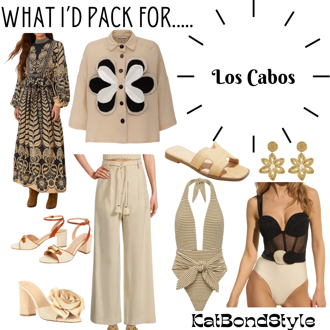 Today I am sharing what I would pack for a trip to Cabo. I had the pleasure of being there at this time last year and am still missing the amazing food. I found it to be a destination that you could wear a wide variety of styles, so this is just my take on what would be chic and fun to pack.
